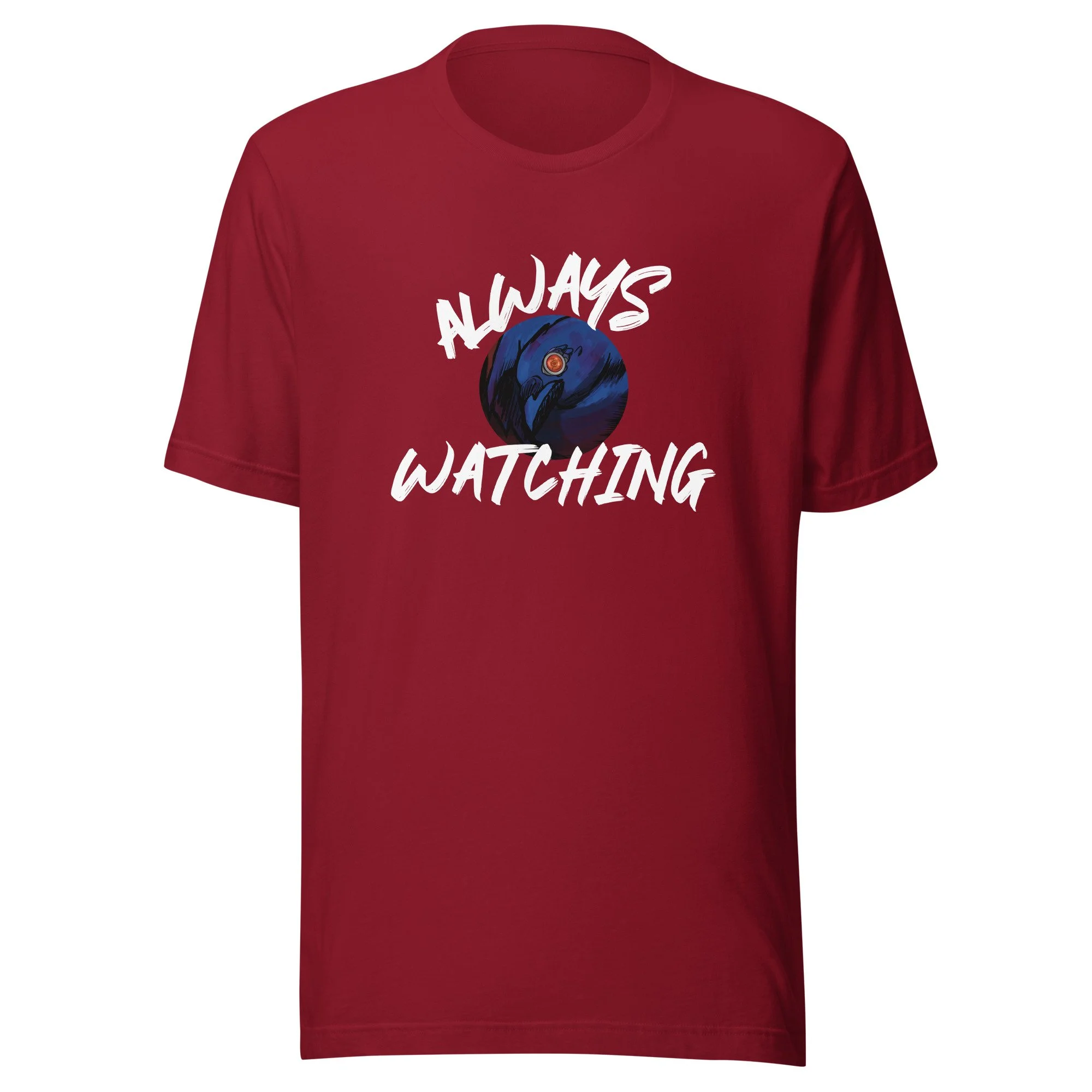 Doesn't feel like there's someone always watching these days? Front and back design featuring a cyborg-crow who looks pretty interested.